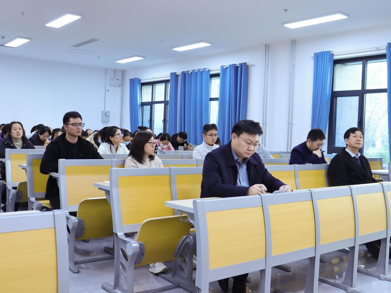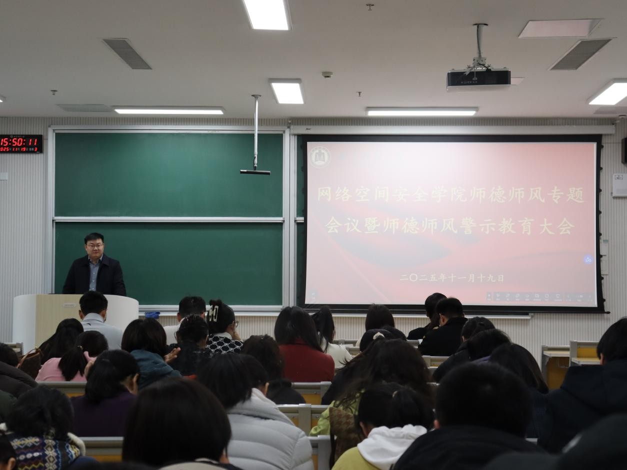 师德师风专题会议暨师德师风警示教育大会于格物楼B105教室顺利举行。学院党委书记田云飞、院长王茂励、党委副书记范瑞红、副院长马旭及全体教职工参与会议,王茂励主持会议。