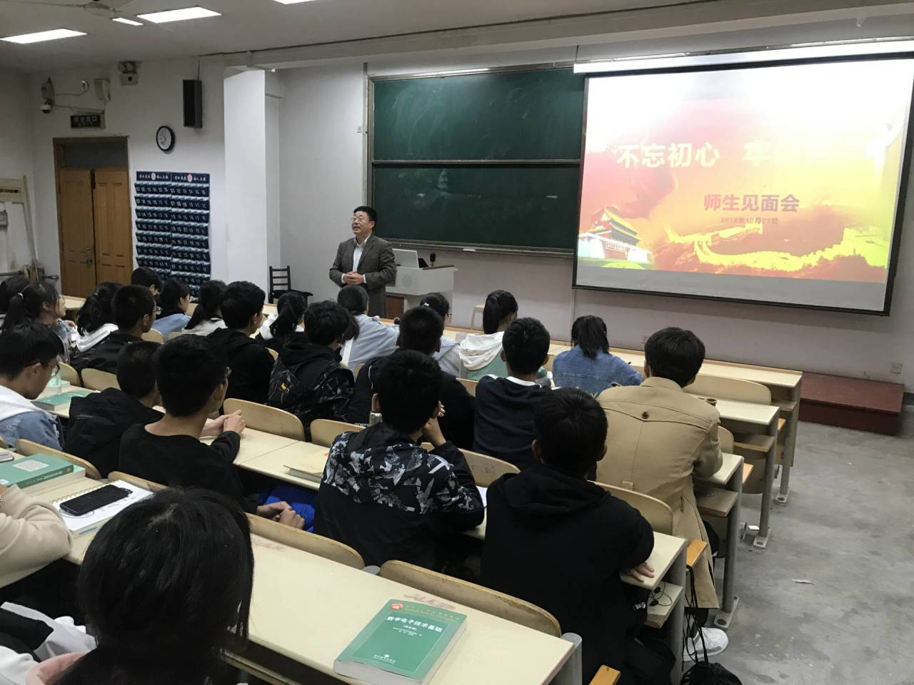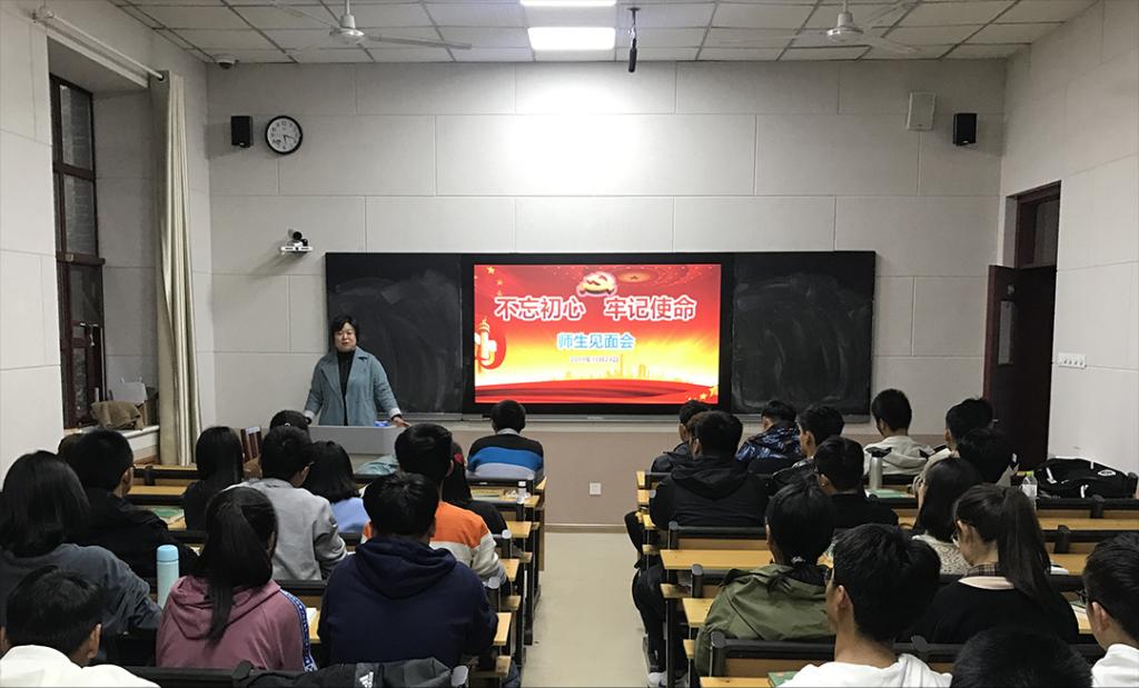 网络信息中心主任徐新农联系18级软件开发班。徐主任向同学们阐述了不忘初心,牢记使命的意义,告诫同学们要信念坚定、志存高远,不畏险阻、勇于担当,在这个伟大的时代,砥砺奋进、主动作为,用奋斗书写青春华章,奉献青春力量。