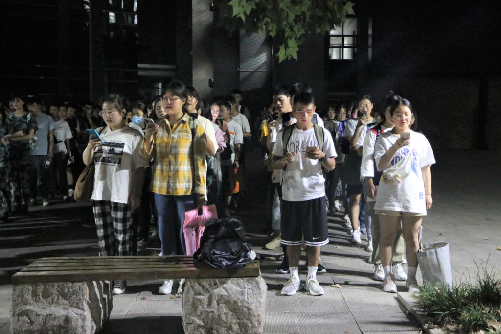 合唱开始前,同学们在大学生活动中心认真背诵歌词,部分同学积极竞选合唱指挥,展现自己的风采。在武老师和大艺团同学的带领下,随着“走向复兴”音乐的响起,激情昂扬的同学们迅速进入状态,气势高昂、奋发有力的歌声响彻整个场地。结束了一天的军训,紧张的氛围变得轻松欢快,这使得同学们养精蓄锐,为第二天的训练打下了基础。