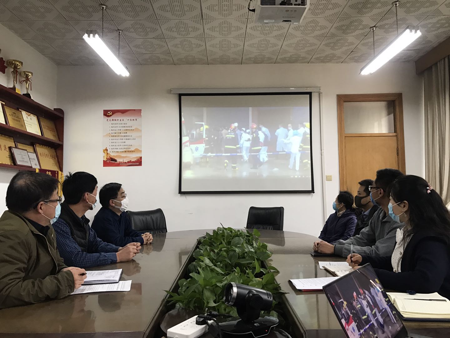 教师在会议室收看了《大学消防公开课》直播,学生在家也通过网络进行了观看。公开课在广西桂林市广西师范大学雁山校区举办,应急管理部消防救援局专业人员和主持人担任主讲。