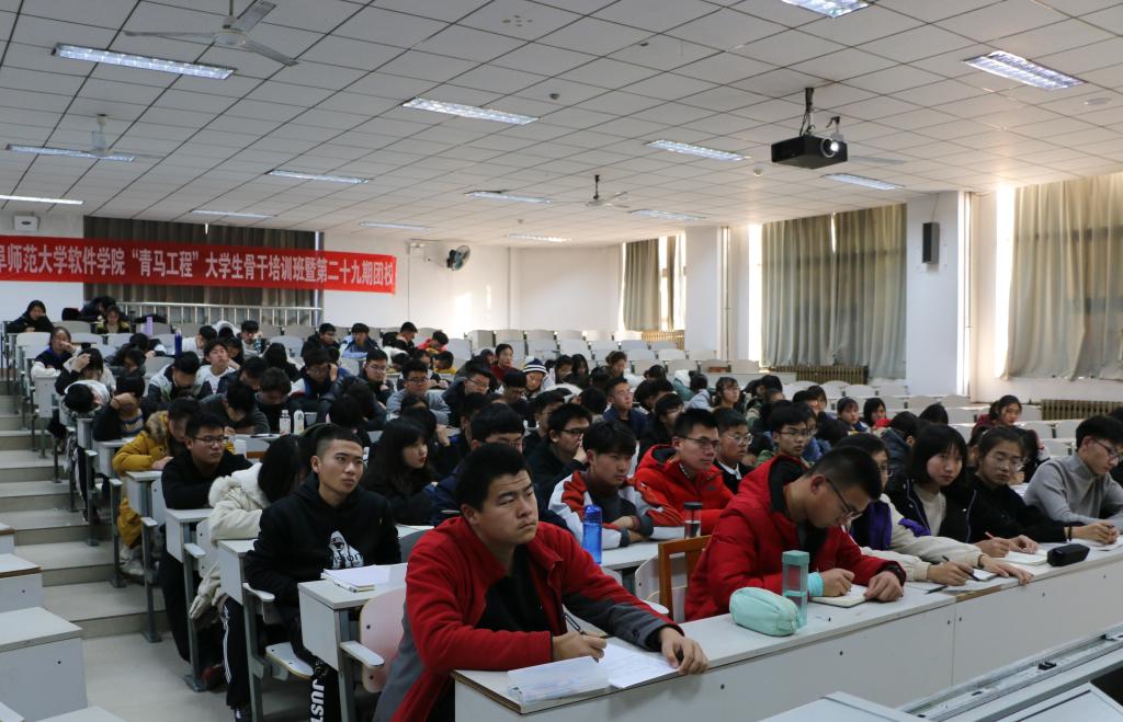 2019“青马工程”软件学院培训班暨第二十九期团校课程第五讲在综合楼201教室开讲,软件学院团委书记范瑞红主讲,软件学院2019级学生干部参加。