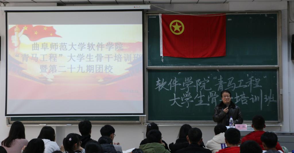 12月11日下午,软件学院“青马工程”大学生骨干培训班第四期于综合楼201教室成功举办。软件学院党委副书记田凯、团委书记范瑞红及2019级软件各班学生骨干参加了此次培训活动,田凯书记主讲。