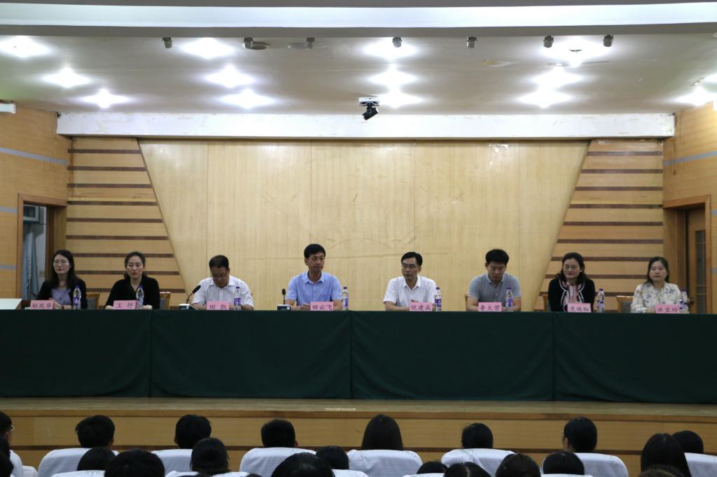 9月16日晚,软件学院2019级新生见面会暨入学教育活动在孔子礼堂成功举行。软件学院党委书记田云飞,副院长倪建成,院长助理鲁大营,团委书记范瑞红,研究生辅导员王抒,本科生辅导员郑凤华、洪亚玲出席会议,会议由软件学院党委副书记田凯主持。
