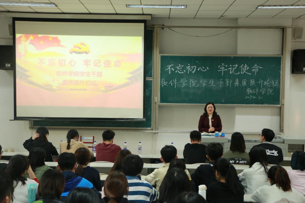 10月30日下午,软件学院学生干部素质提升论坛在综合楼406顺利进行,软件学院团委书记范瑞红、辅导员洪亚玲出席本次会议并讲话,学生会主席张鑫主持本次会议。