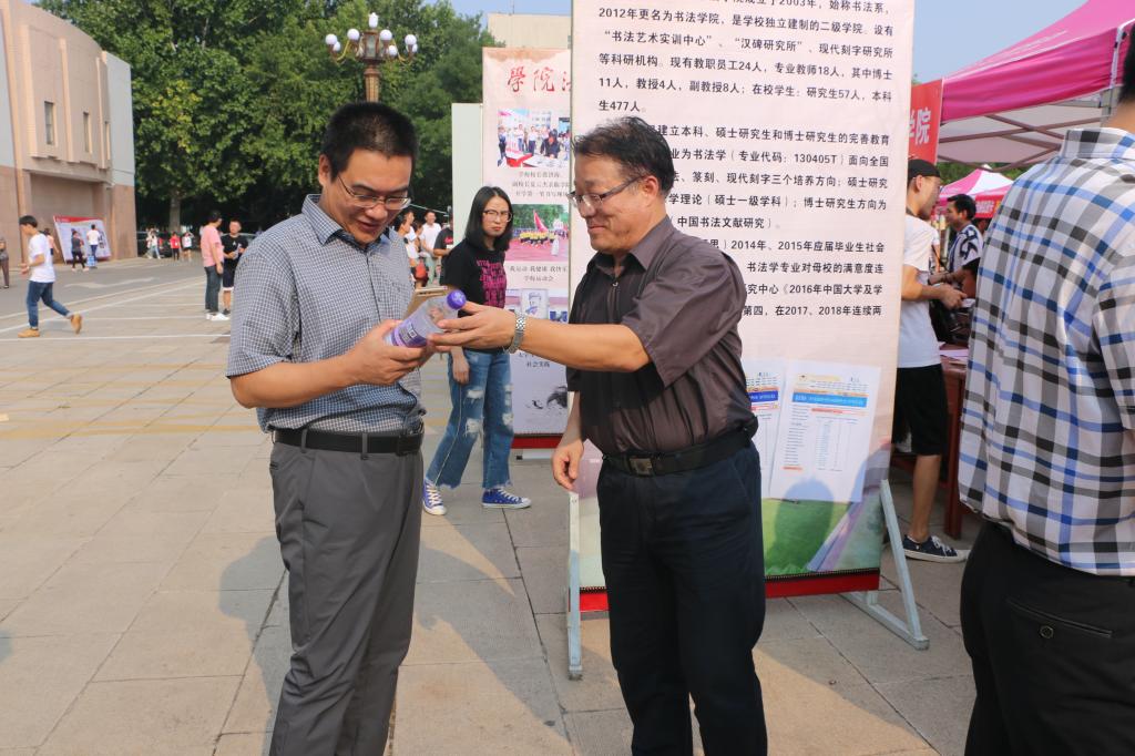 党委书记田云飞,党委副书记田凯,副院长倪建成,团委书记范瑞红,辅导员郑凤华、洪亚玲在迎新工作现场指导。“会当0绝顶,1览众山小”,壮志豪情的迎新标语,给踏入曲园的学子注入澎湃的激情和力量。1和0组成的代码世界,将为同学们推开另一扇门,打开一片新天地。“瓶”水相逢,一瓶瓶定制的水,宣传学院文化内涵,标注温馨提示,为车马劳顿的新生、家长,送去了沁入心田的凉爽和浓浓的情谊。“一纸传情”,启航院报第一期亮相,第一时间让新生了解学院的文化和取得的成绩,共享荣耀,共同开启新篇章。特色鲜明的迎新活动,引大量师生关注。