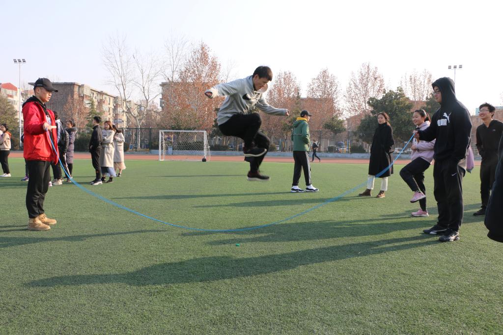 总结大会中,副主席于睿哲、体育部部长白光源分别发表讲话,他们对冬训队员们的毅力表示肯定和赞赏,并希望在下一年春训时能再次看到大家。在教练代表候金铭对冬训进行总结,候教练表达了自己和同学们在此次冬训里的收获后,白光源部长宣布趣味运动会正式开始。比赛分为绑腿跑、跳大绳、踩气球大作战和夹气球折返跑四个项目。尽管寒风凛冽,同学们依然兴致盎然,认真进行热身等赛前准备,在跳大绳、踩气球比赛中玩的不亦乐乎,竞赛氛围激烈又不失轻松愉快;绑腿跑和夹气球折返跑项目的比赛异常激烈,各队队员之间的紧密合作也充分得到了体现。同学们将青春的光芒发挥到极致,诠释了“友谊第一比赛第二”的良好竞争原则。比赛结束后,各训练队队长分别为王震、单桂友等优秀队员颁发“优秀训练队员”奖状,所有参赛选手合影留念,趣味运动会圆满结束。