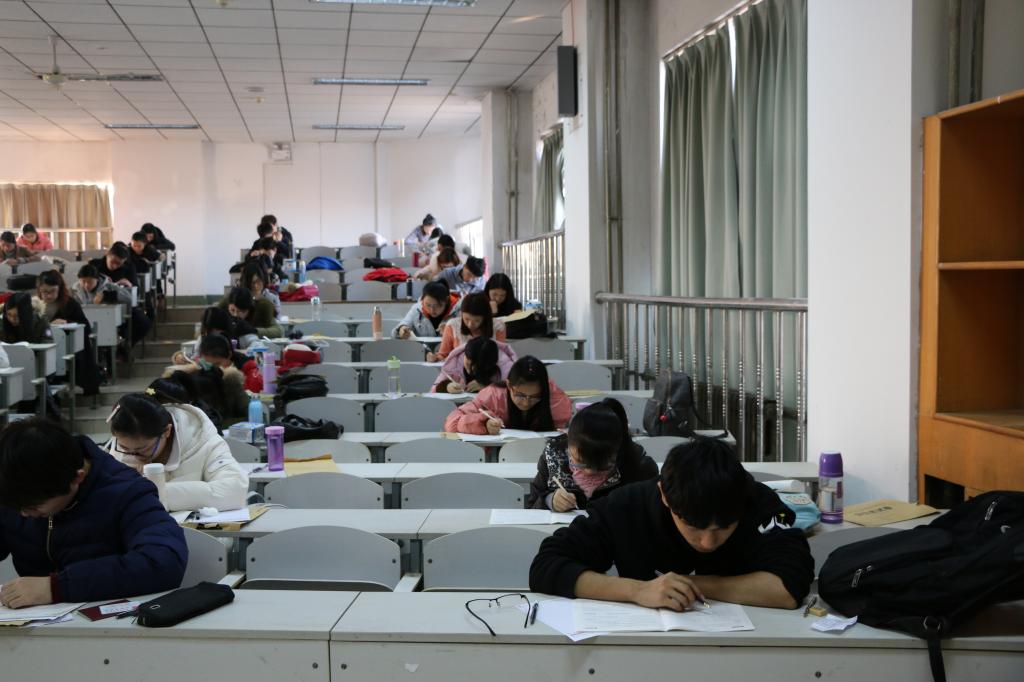 本次模拟考试在综合楼306、406、506三个教室同时进行。考试流程和考试题型严格遵照全国大学生英语四、六级考试的大纲标准,高度还原考试现场。下午两点半考生秩序进场,三点正式开考。考试过程中,监考人员谨慎负责,参考同学态度端正,严肃认真,整场考试秩序井然,充分达到了“考场演练”的目的。