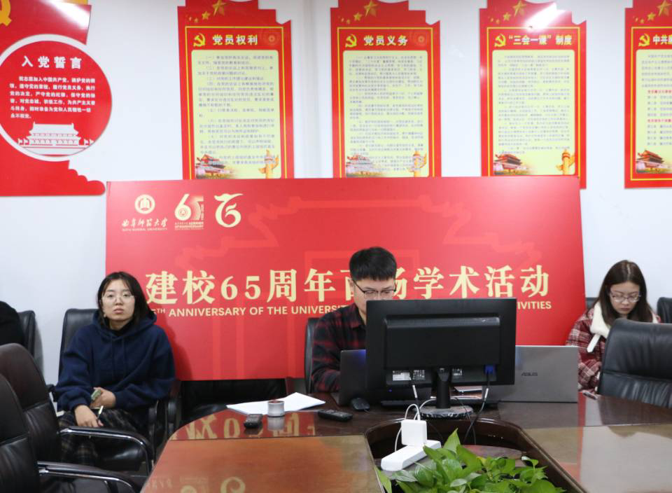 于会议室举行学术报告会,由陈晓峰教授和张方国教授主讲,同学们采用在线上线下两种方式观看此次直播。