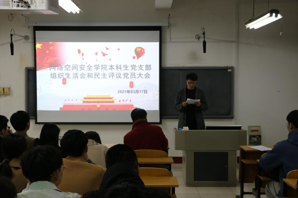田凯代表本科生党支部向大会汇报一年来的支部党建工作,从政治建设、思想建设、组织建设、作风建设以及支部创新活动等方面进行了述职,查摆不足,并拿出切实可行的整改方案。