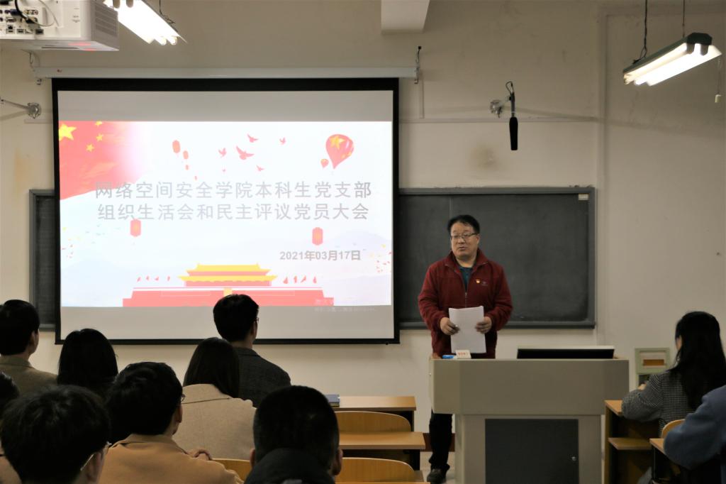 会议最后,田云飞书记强调:一个党员就是一面旗帜,各位党员同志要积极进取,不断进步,发挥党员模范带头作用,为学校、社会贡献绵薄之力。新时代下要贯彻落实党中央的精神,提高自己的政治觉悟和思想,加强党员教育管理和作风建设,加强纪律建设和思想政治教育。
