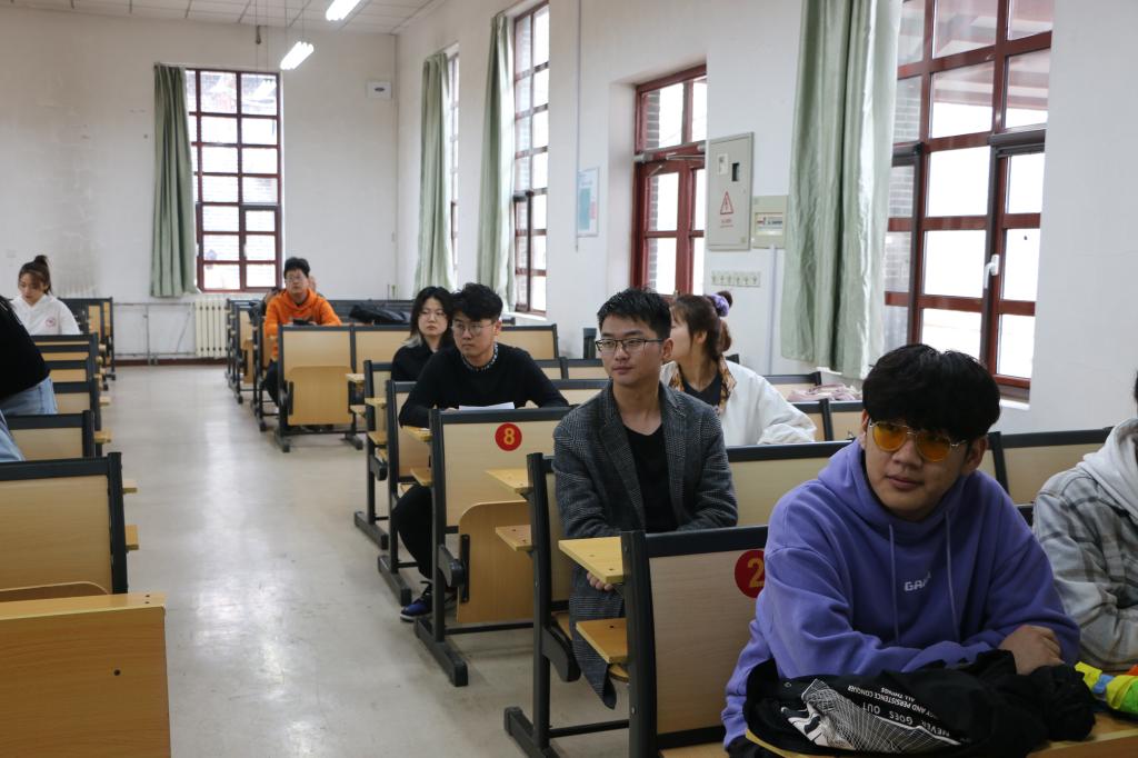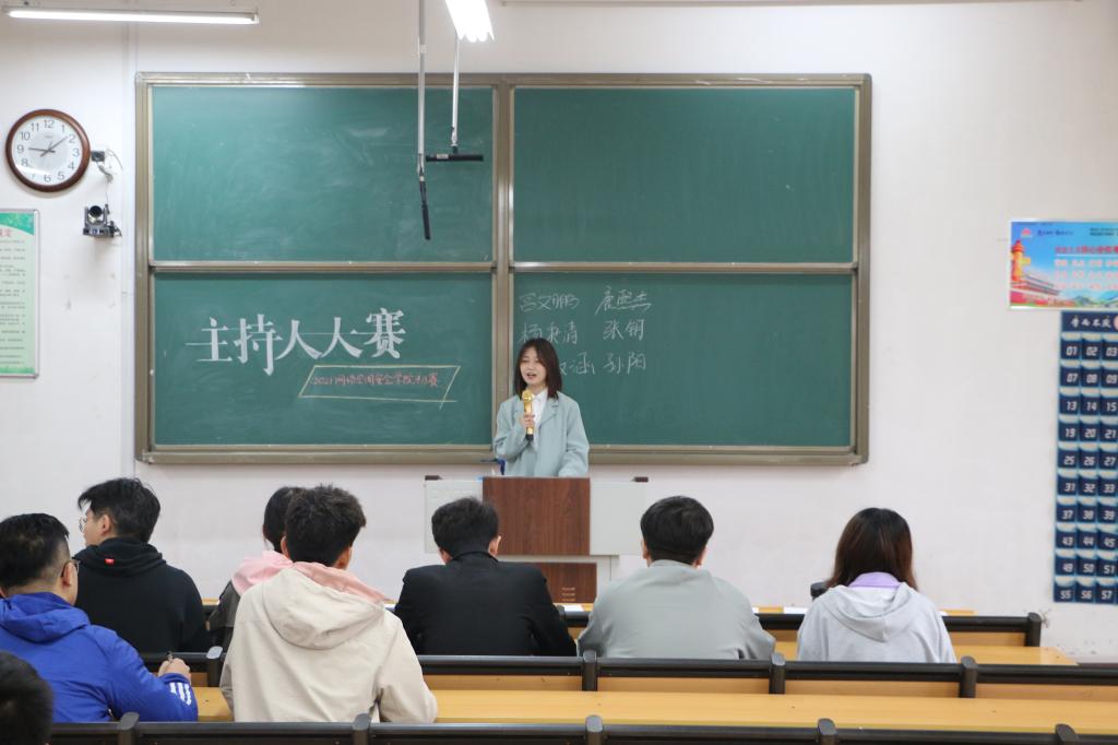 在西联一教室举办主持人大赛初赛,本次比赛由辅导员丁允念以及文艺部成员参加并担任评委。