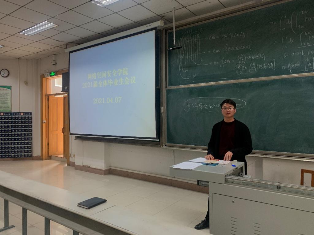 院讯(通讯员:范瑞红,王鹏)4月7日,学院在综合楼101教室召开2021届全体毕业生会议。学院党委副书记田凯、2017级辅导员丁允念以及2017级全体在校毕业生参加本次会议。