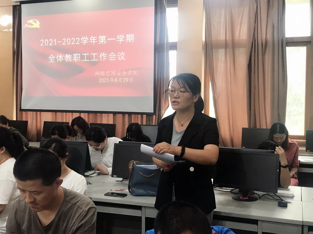 在502教室召开2021-2022学年第一学期全体教职工工作会议。学院党委书记田云飞主持,院长王茂励作《以学生为中心,全面提升教学质量》工作报告。