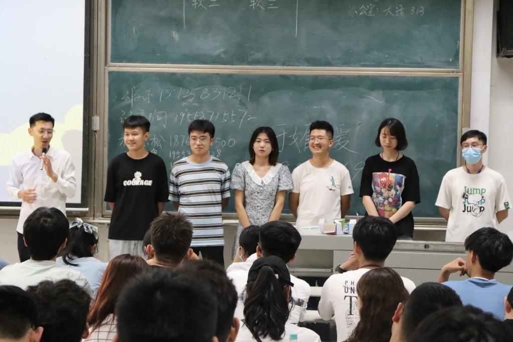 于综合楼101、106教室同时召开新生见面会,辅导员丁允念、李扬、于媚媛与新生初次见面,畅聊大学新生活。