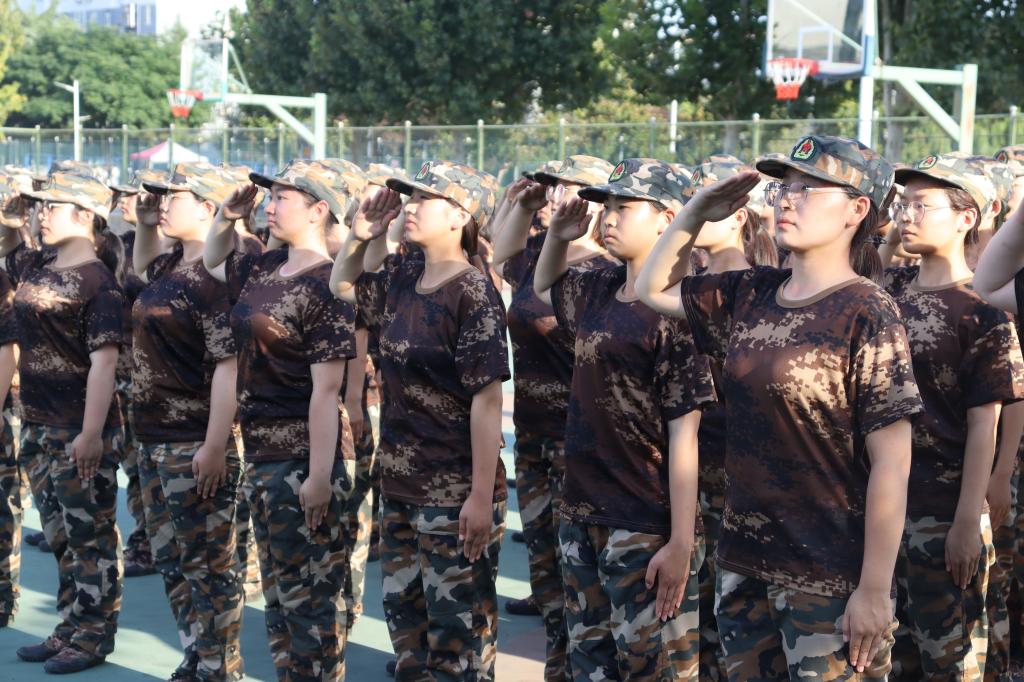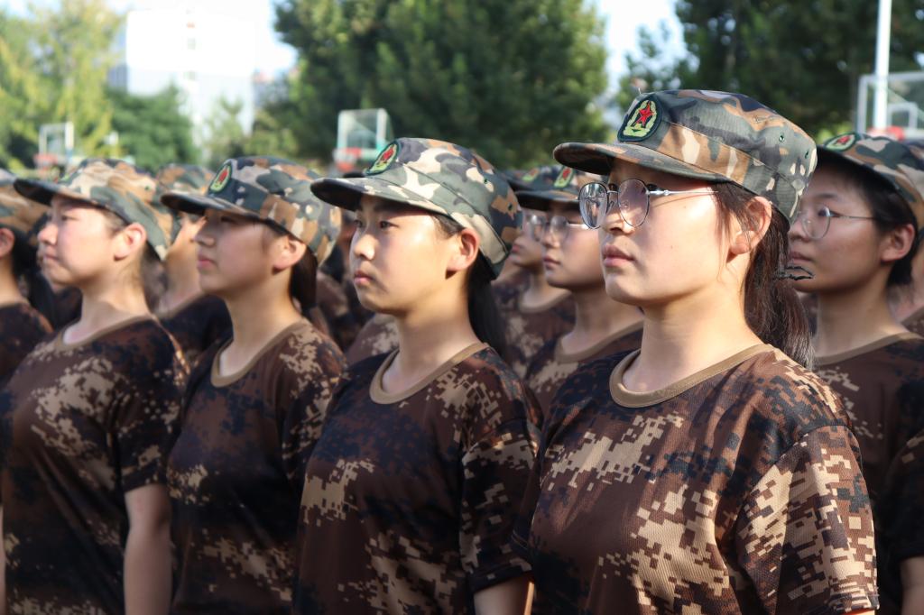 站军姿是军训的第一课,每一次的训练都会以站军姿开始。阳光照在每一名新生的脸上,而他们坚毅的目光映照出必胜的决心。立正、稍息,每一次的动作都力求标准、整齐划一。炎炎夏日下,每一个人都已汗流浃背,但仍坚持不懈,不轻言放弃,心中依然坚定着信念。军训时,每一个动作都需要全神贯注地去完成,正所谓“站如松、坐如钟、行如风”,连长们耐心地帮助新生们指正错误,调整成正确的姿势。一摆一动,令行禁止,军训不仅是对新生们身体的考验,更是对他们意志的磨练。
