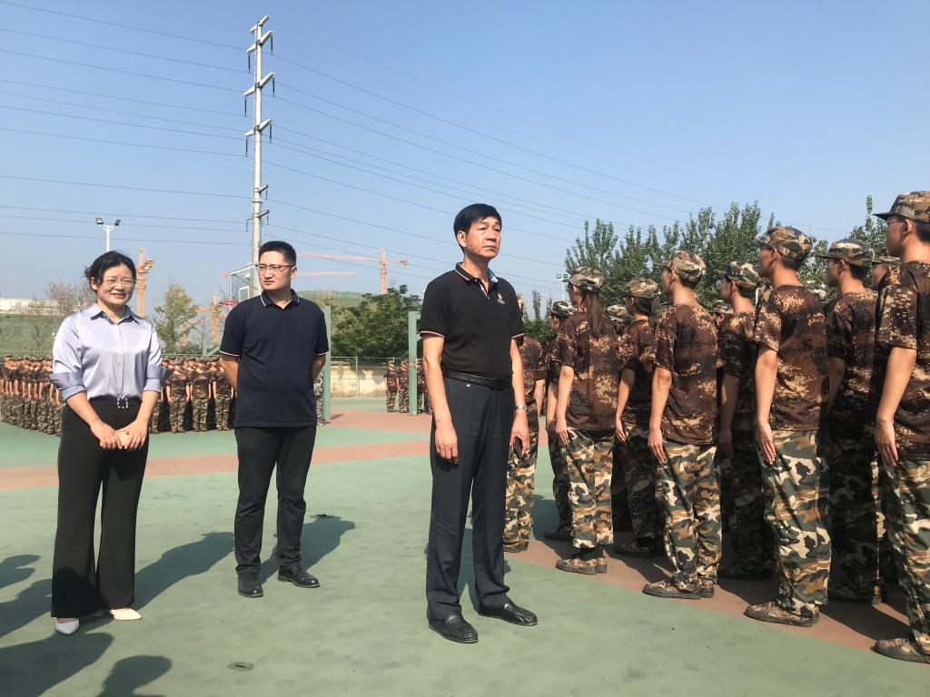 新生军训工作正如火如荼地进行着,学院党委书记田云飞,党委副书记范瑞红、副院长马旭、辅导员洪亚玲、丁允念、于媚媛到训练场地亲切看望同学们,观看其训练成果。