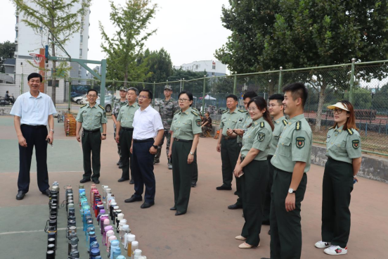 军训期间,学校党委常委、副校长胡钦晓,学工处处长姜美颖、副处长田凯、毛永正在党委书记田云飞、副书记范瑞红的陪同下到训练场地视察军训工作、慰问训练新生。胡钦晓详细询问了新生的训练情况,并对网安学子不怕苦不怕累、执着坚持的精神表示了肯定。