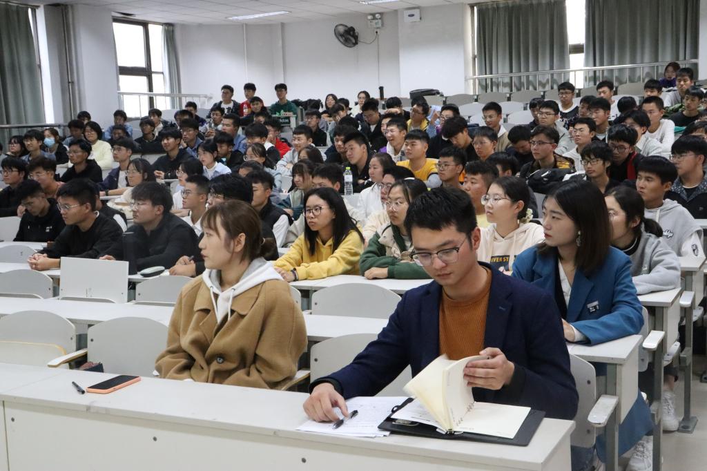 于综合楼301教室召开冬训动员大会,党委副书记范瑞红,辅导员丁允念、洪亚玲、武玉龙、于媚媛、相青以及21级新生参加本次动员大会。