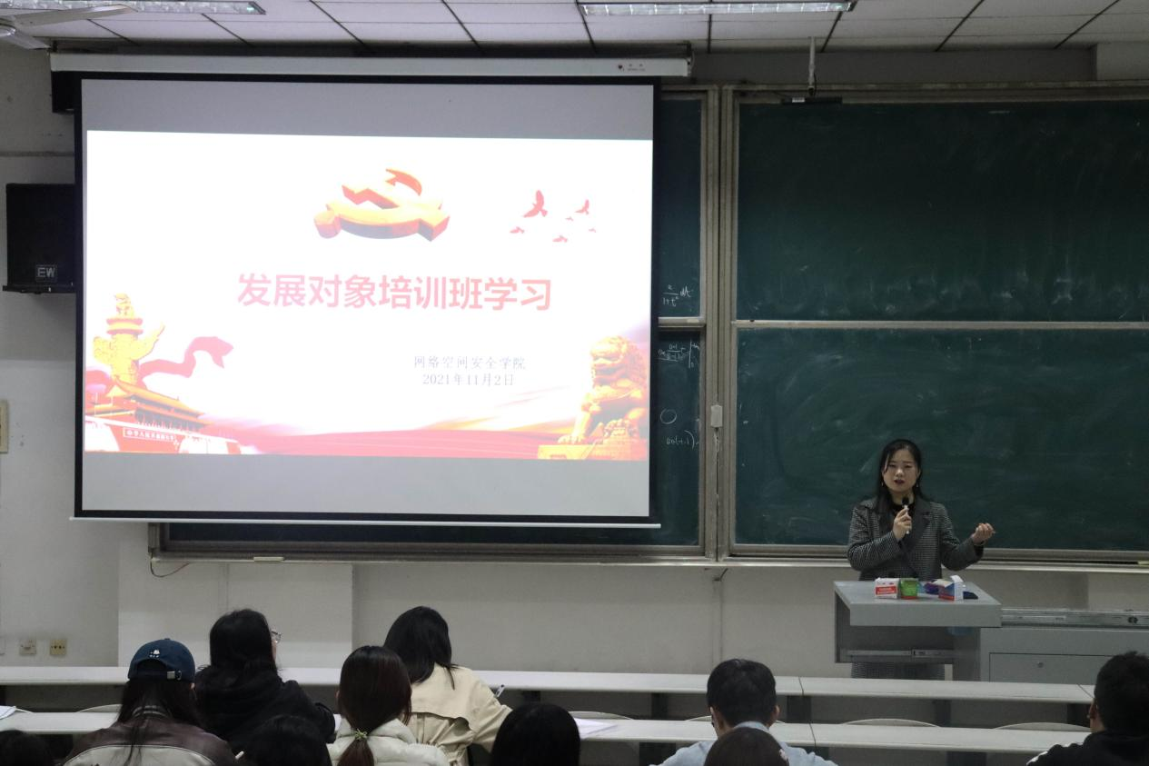 在综合楼106组织开展党员发展对象集中培训学习,本科生党支部洪亚玲、武玉龙两位老师担任主讲人。