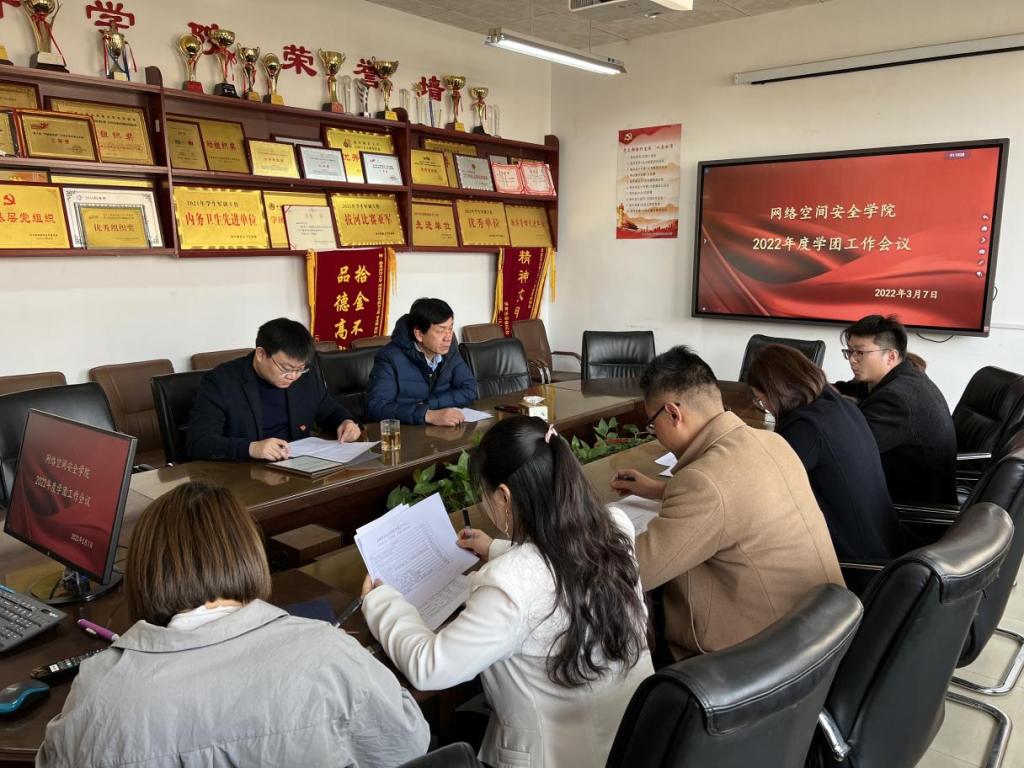 在410会议室举行2022年度学团工作会议。学院党委书记田云飞、院长王茂励、党委副书记范瑞红、团委书记丁允念及全体辅导员参加会议,田云飞主持本次会议。