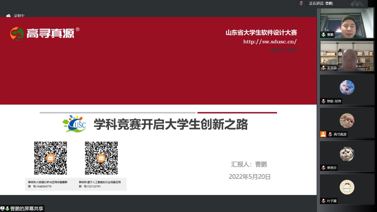 “第二十届山东省大学生软件设计大赛”命题宣讲活动于线上举行。高寻真源(山东)教育科技有限公司曹鹏、91探花