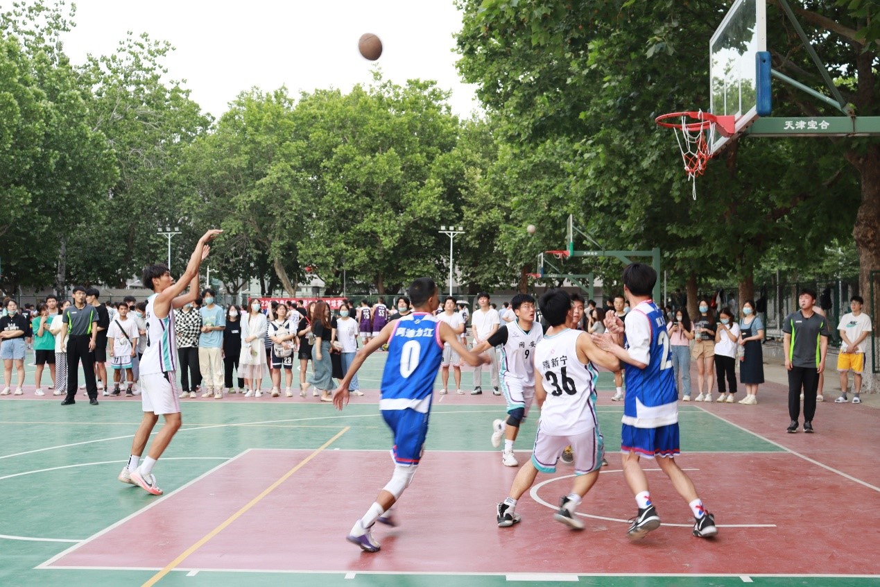 篮球队成功晋级四强。队员们在比赛中积极投入,彰显了奋力拼搏,永不言弃的体育精神,展现出了曲园学子的青春风采。