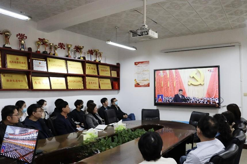 党委组织学院师生党员在学院410和502教室观看中国共产党第二十次全国代表大会开幕会直播。