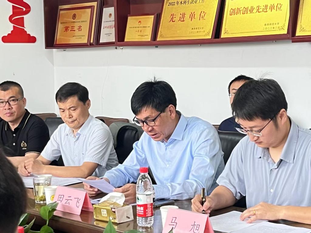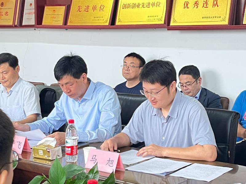 党委书记田云飞主持,副院长马旭、曲阜市科技局刘中昱局长、曲阜市天博公司技术总监宫恩杰,以及学院教师代表参加会议。