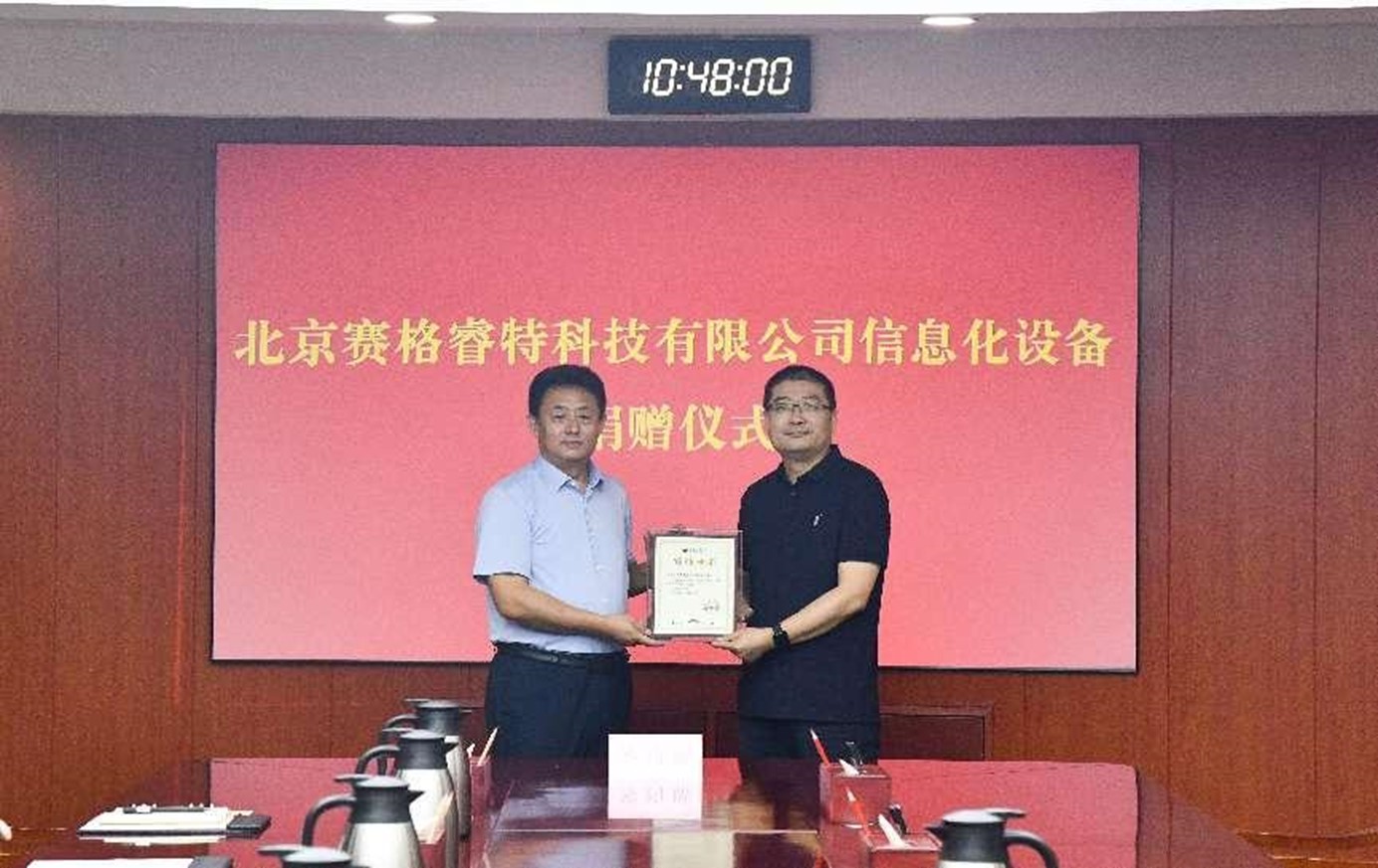 纪洪涛代表学校对北京赛格睿特科技有限公司的慷慨捐赠表示衷心的感谢。他介绍了学校近几年在学科建设、人才培养、师资队伍、文化底蕴等方面取得的显著成就。他指出,学校的发展离不开广大校友的鼎力支持,这次捐赠提升了学校的教学条件,丰富了学校的教育资源,有助于促进教学和科研工作,希望今后双方进一步加强合作,继续深化产教学融合,为社会输送更多具有创新精神和实践能力的高素质人才。