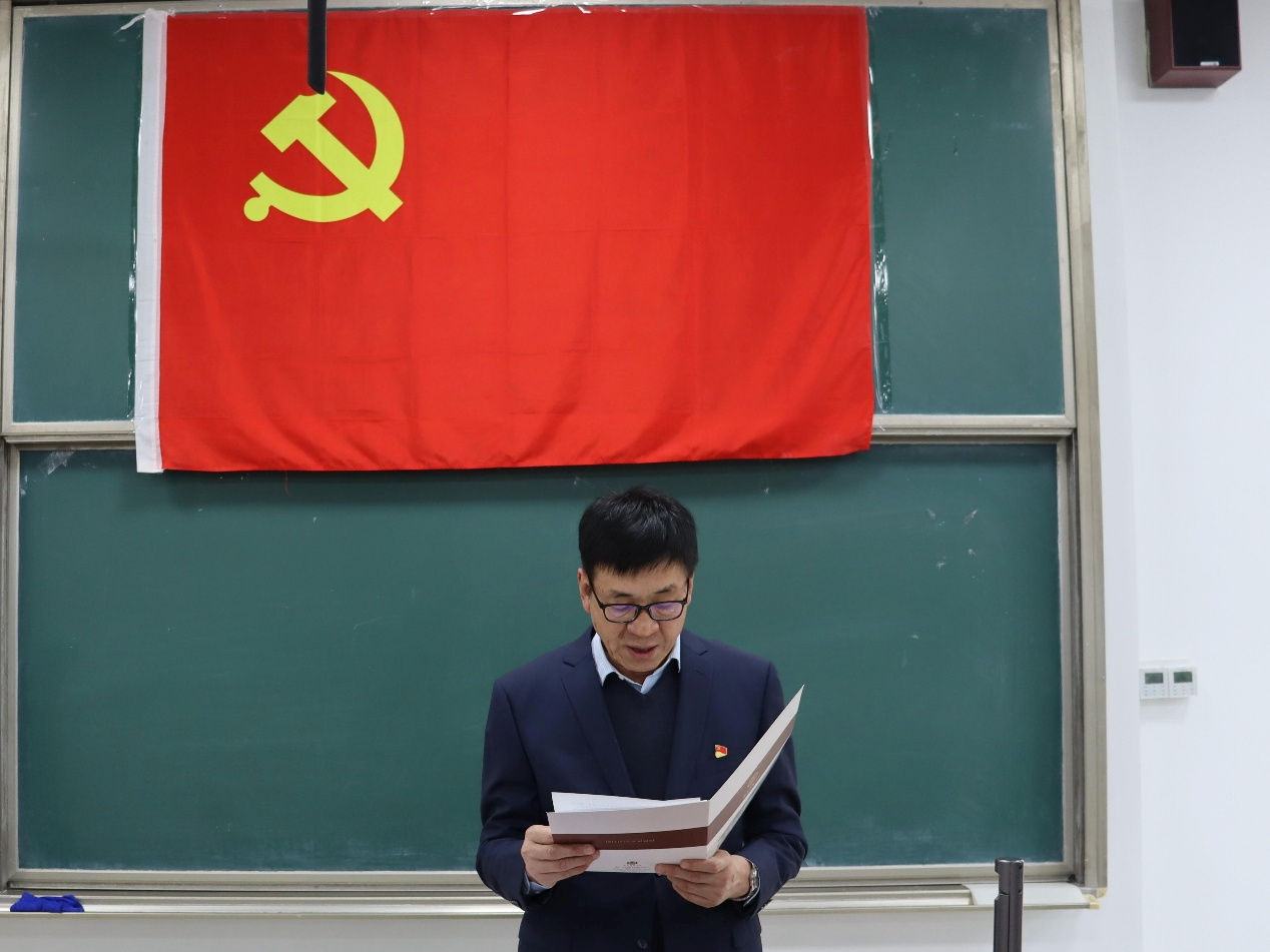 “深学细悟明方向,勇毅笃行建新功”主题党课于综合楼B106教室召开。学院党委书记田云飞、院长王茂励、党委副书记范瑞红、副院长马旭、各党支部书记及全体教职工参加会议。会议由田云飞主持。