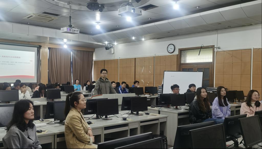 首先,高鹏老师向同学们普及了消防安全常识,包括火灾类型、灭火方式等基础知识,并向同学们讲解了消防器材的使用方法以及发生火灾时正确的逃生方法,提高了同学们的消防安全意识和逃生自救能力。然后,高鹏老师介绍了预防食物中毒、识别网络诈骗以及校园交通安全等安全常识,帮助同学们了解和掌握基本的食品安全常识与自救技能,教育大家提高警惕,以及如何识破不法分子欺诈行为的方法,强化了同学们的安全警惕意识、自我保护意识、交通安全意识,以避免意外事故的发生。最后,高鹏老师列举了近期发生的因违规用电导致学校宿舍楼失火典型案例,提醒同学们注意宿舍用电安全,并进一步对学生宿舍卫生及用电安全问题作出详细要求,实现宿舍卫生安全检查工作常态化,希望同学们遵守法规校纪,安全用电,对自己和他人的生命财产安全负责。