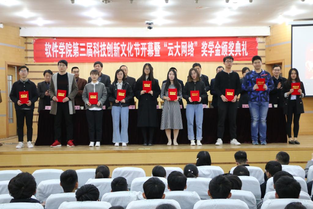 榜样力量,青春励志。在会议第二阶段,软件学院副院长倪建成宣读软件学院第二届“云大网络”奖学金十佳学子、“星级标兵”、最佳团队获奖名单,主席台领导为获奖同学颁奖。随后,91探花