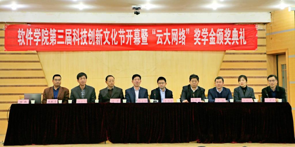 “预见未来·开启智能时代”,4月3日下午,软件学院第三届科技创新文化节开幕暨“云大网络”奖学金颁奖典礼在孔子会堂成功举办,山东云大网络有限公司、惠与软件济宁人才产业基地、学校学生工作处、实验教学与设备管理中心、教务处、校团委、软件学院等相关单位负责人出席大会,会议由软件学院党委副书记田凯主持。