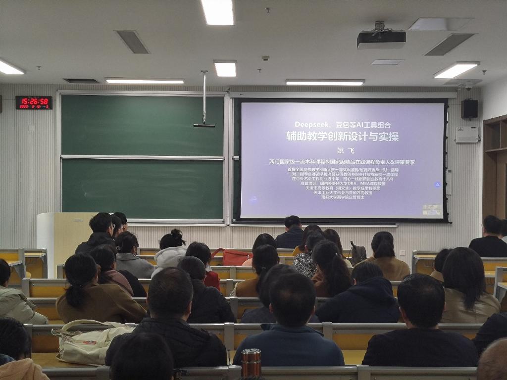教职工AI工具辅助教学集体学习活动于格物楼B107开展。学院党委书记田云飞、院长王茂励、党委副书记范瑞红,副院长马旭以及全体教职工出席会议。会议由田云飞主持。